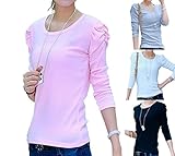 便利 カットソー パフスリーブ Tシャツ レディース カジュアル トップス ロングTシャツ ロンT 長袖 半袖 丸首 白 黒 ピンク レディス ホワイト ブラック 大きいサイズ 小さいサイズ チュニック (目印に便利な「ホナまたステッカー」付)[pierrot de pierrot (ピエロドピエロ)]