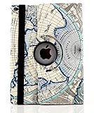 【Hi-Hi-World】 iPad Air 2 アイパッド エアー 地図柄 旅気分 ブック手帳式 360度 回っちゃう ケース (4.ブルー)